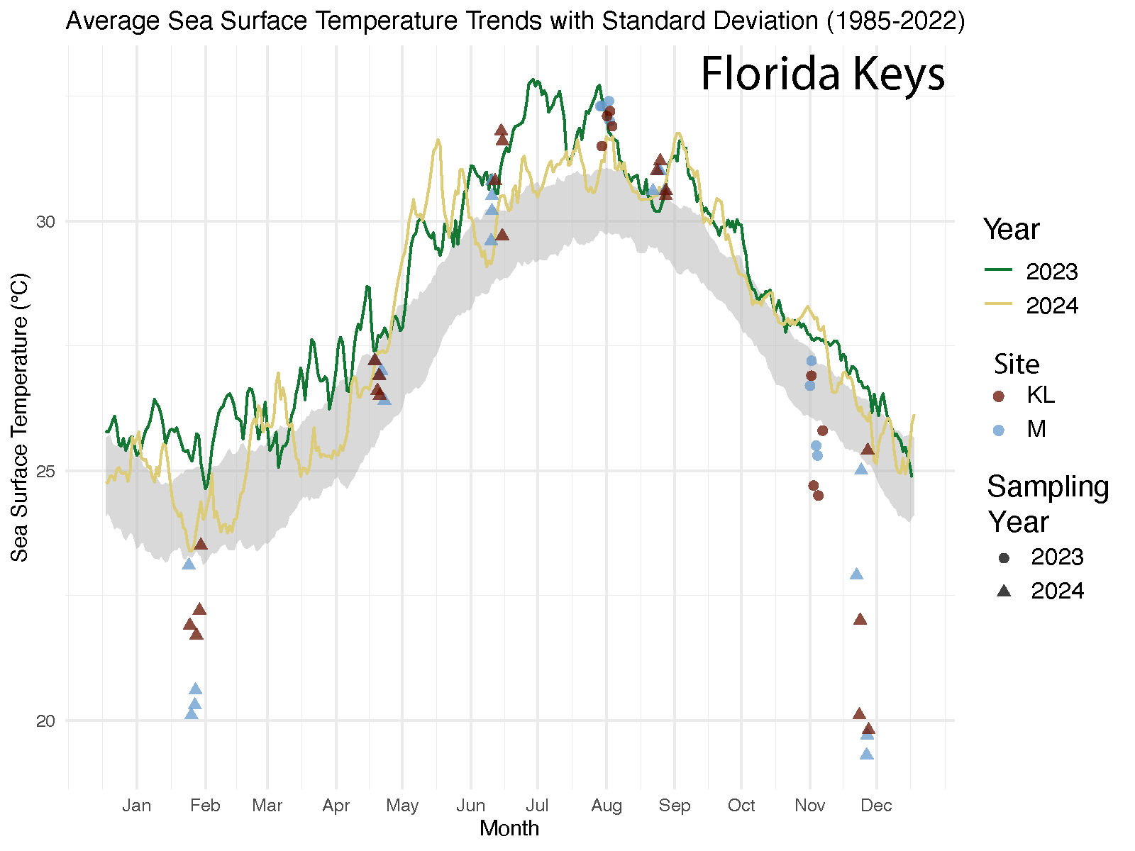 This summer, aquatic environments around the Southeastern US and the Caribbean experienced an unprecedented heatwave, with one site in coastal Florida (Manatee Bay, FL) surpassing 38 °C. Fueled by climate change, temperature anomalies, such as the heatwave this summer, are expected to be exacerbated by El Niño. In collaboration with the Cornell Marine Mass Mortality Laboratory (Dr. Ian Hewson).