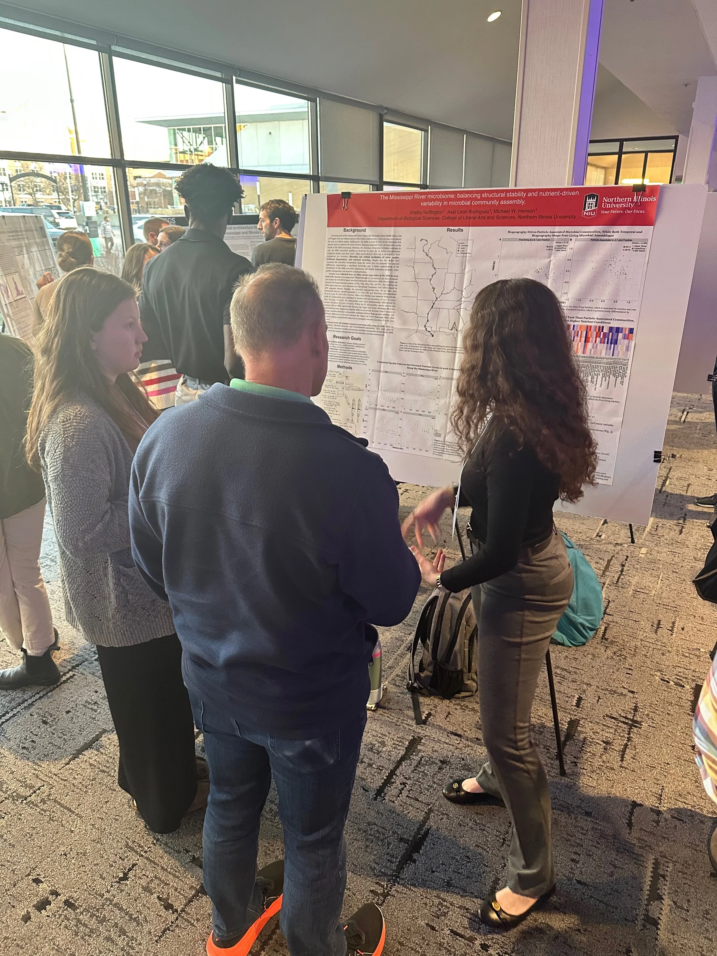 Congratulations to our undergraduate researchers in the Aquatic Microbiology Lab for presenting their 2025 projects! In April, Shelby and Dr. Henson traveled to La Crosse, WI to share her work on the Mississippi River microbiome at the Mississippi River Research Consortium (MRRC). Later that month, Shelby, Daisy, and Krista presented at the 2025 NIU CURE conference. Daisy and Krista showcased their cultivation and physiology research on bacteria from the OM252 and HIMB11 clades. Great work, team!